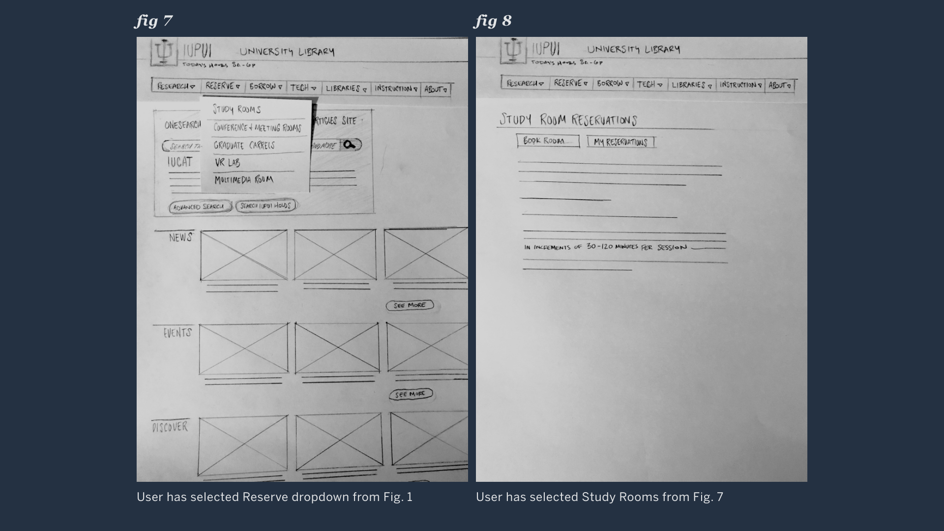 Selected Reserve dropdown, then“study room”— landing page, eyes immediately see the scheduling information