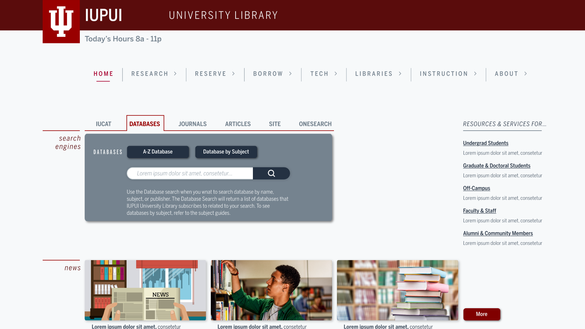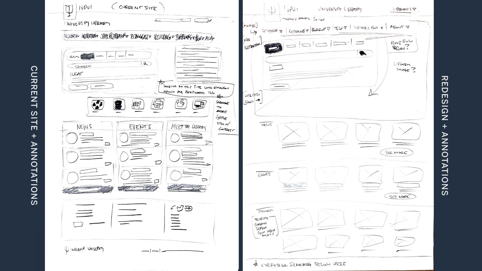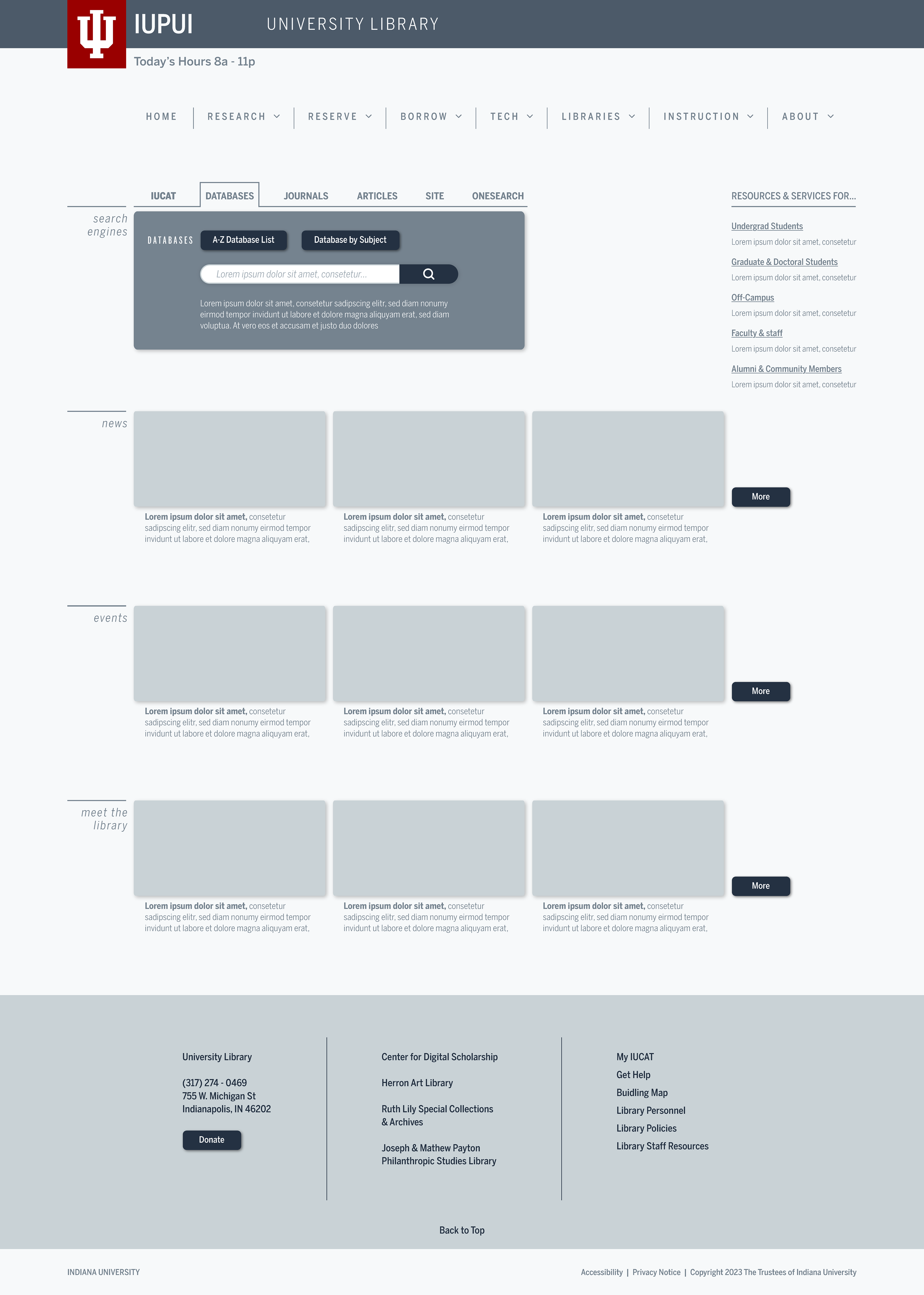 We were tasked to choose an educational tool to evaluate. I chose IUPUI’s University Library website, as upon my visiting, it was immediately painful to my eyes. It was also extremely cluttered.