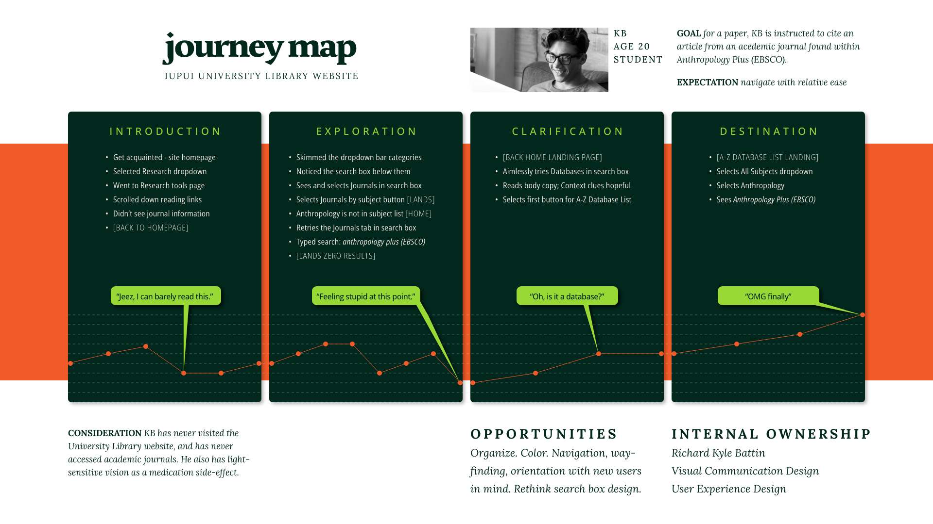 Not much issue with the flow, conceptually. Just need to reorganize, minimize, and recolor, to optimize legibility and usability. (i.e., make the dropdown menus on the database search pages more legible and conspicuous).